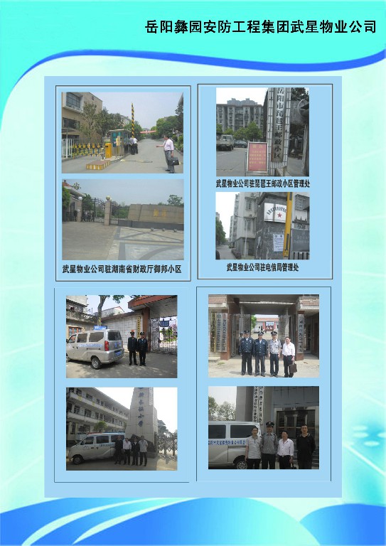 岳陽武星物業(yè)管理有限公司繼岳陽市武星保安公司于2012年2月成立,武星保安公司是經(jīng)省公安廳批準(zhǔn)成立的民營保安公司,為滿足廣大客戶的迫切要求,公司能為客戶提供保安、物業(yè)整體服務(wù)。武星物業(yè)公司技術(shù)力量雄厚,有電梯維修工程師、園林綠化師、水電安裝工程師、消防等專業(yè)技術(shù)人才。為了更好地服務(wù)社會、培育特種人才,公司與岳陽市巴陵職業(yè)技術(shù)學(xué)校聯(lián)合辦學(xué),開設(shè)了保鏢保安武術(shù)散打班、物業(yè)管理班、園林綠化技術(shù)班、水電維修班、禮儀班,現(xiàn)有專業(yè)學(xué)員幾百名。公司為各黨政機關(guān)、社會團體、廠礦企事業(yè)單位、金融機構(gòu)、房地產(chǎn)開發(fā)商居民住宅、賓館、學(xué)校、娛樂場所等提供人力資源和技術(shù)防范服務(wù)。目前公司有幾十家大客戶,公司優(yōu)質(zhì)的服務(wù)得到了客戶的好評。現(xiàn)經(jīng)公安廳市公安局批準(zhǔn)成立了保衛(wèi)科、督查應(yīng)急大隊,為客戶不定時的服務(wù)和回訪,公司有一批業(yè)務(wù)精、能力強的管理人才,為客戶提供高質(zhì)量的服務(wù)。武星保安物業(yè),保您家安樂業(yè)。